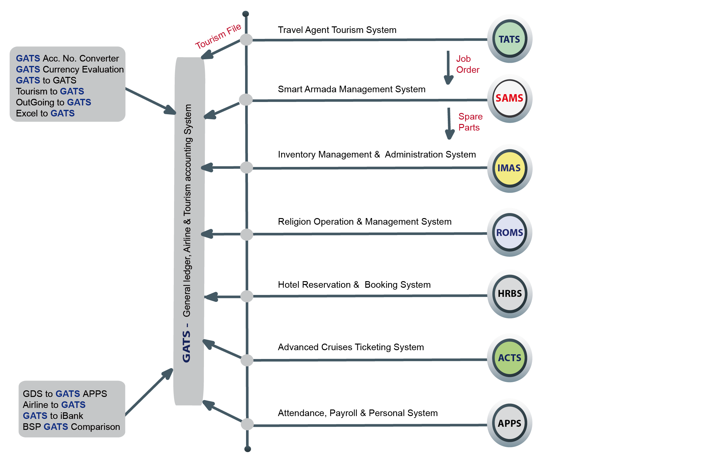 GATS Is A Powerful Computer Software System Handling Carefully Your Financial Department Activities And All Your Airline tickets accounting, Tourism files accounting, Journey files accounting, Account receivable & payable, Tourism transports accounts, Fixed Assets depreciations, Budget financial plan, Tickets accounting and Financial Statements reports.
